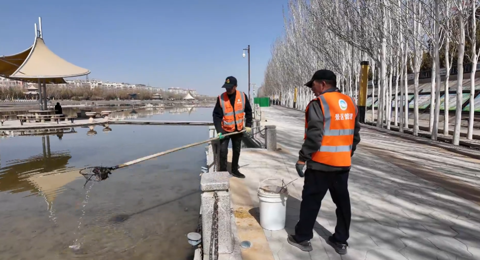 党河风情线工作人员潘丙成说:“我们已经打捞十几天了,把河道的垃圾处理掉,为市民和游客营造良好的游览环境。”
