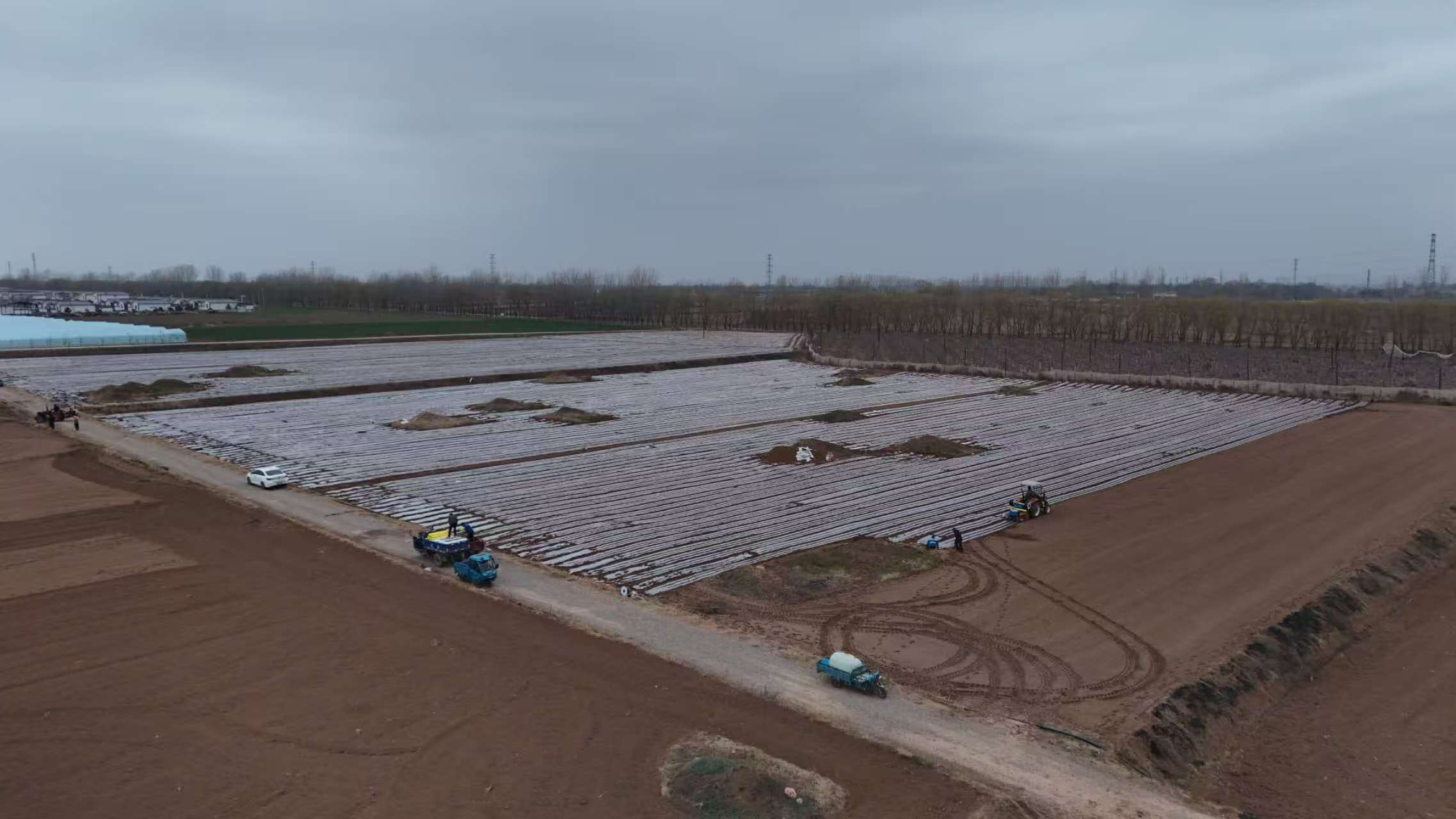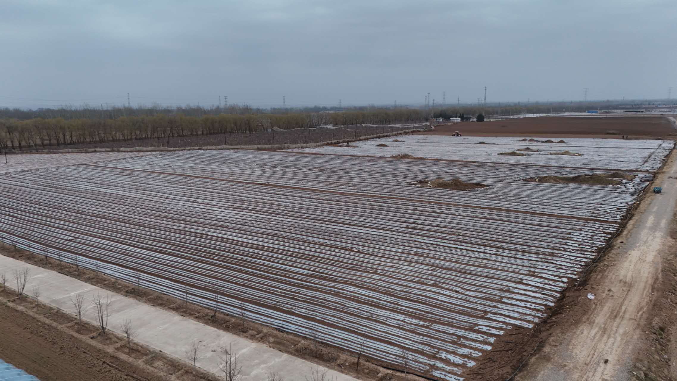 类似的场景也在该县上良镇荣旺村上演。伴随着旋耕机、覆膜机的轰鸣,这里的土地经过机械化“梳妆”后同样披上了银装。地膜从地头直铺到地尾,线条流畅、场面壮观。荣旺村通过“整村一块田”改革,让大型农机有了用武之地,生产效率大幅提升。