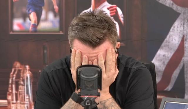 戴着波斯特科格鲁面具、穿着小丑服装的坎迪在talkSPORT演播室贡献了奥斯卡级别的表演,两次激怒奥哈拉直接走出直播间。