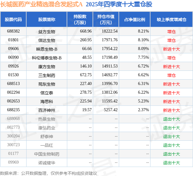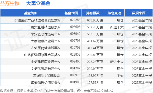 重仓益方生物的前十大公募基金请见下表: