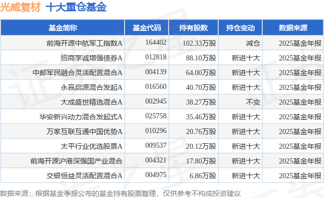 根据2025基金年报公募基金重仓股数据,重仓该股的公募基金共22家,其中持有数量最多的公募基金为前海开源基金的前海开源中航军工指数A。前海开源中航军工指数A目前规模为8.39亿元,最新净值1.1829(3月12日),较上一交易日下跌1.81%,近一年上涨26.65%。该公募基金现任基金经理为黄玥。黄玥在任的基金产品包括:前海开源中证军工指数A,管理时间为2017年2月21日至今,期间收益率为32.7%;前海开源中证大农业指数增强A,管理时间为2019年11月4日至今,期间收益率为12.49%;前海开源MSCI中国A股消费A,管理时间为2020年12月18日至今,期间收益率为-27.89%。