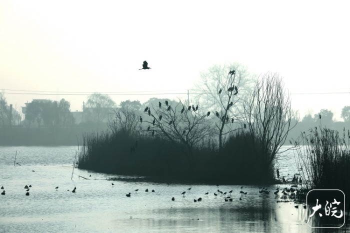 蔡城塘素有“淮南天鹅湖”之美誉,作为千年古水利遗存,水域开阔、水草丰茂,是候鸟迁徙路线上的重要驿站。每至寒冬,万千候鸟如约而至,在此栖息觅食、安然越冬,与碧水蓝天相映成趣,成为一道动人的生态风景线。而今,春天来了,候鸟循着自然节律启程北迁,既是一场告别,亦是一场奔赴,承载着生生不息的自然轮回。