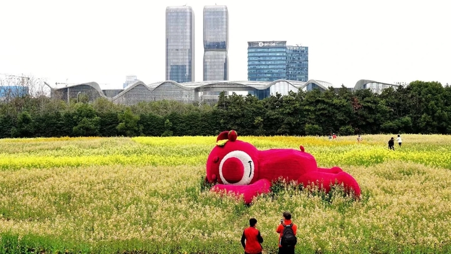 在钱江世纪公园,也藏着一片彩色油菜花田,不是寻常的金黄,还点缀着粉色、白色、橘红色、粉紫色等多个色系的彩色油菜花品种。这片花海是免费开放的,春风和煦,一起踏青去。