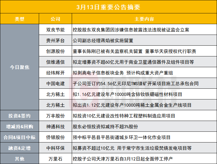 贵州茅台(600519.SH)公告称,公司于2026年3月13日收到遵义市监察委员会关于对公司副总经理蒋焰实施留置的通知。公司生产经营正常有序,公告事项不会对公司生产经营管理产生重大影响。目前,由公司董事长陈华代行董事会秘书职责。