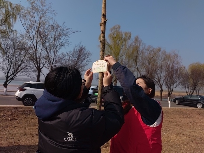 现场,还有不少身穿红色马甲的年轻志愿者身影。来自山东劳动职业技术学院的学生志愿者孙燕亲手栽下树苗,并挂上写满期许的心愿牌。“种下希望,静待成长。希望我们以后也可以像这棵树一样茁壮成长。”她说。