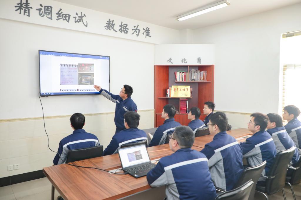 中国铁路上海局集团有限公司上海机车检修段的整车调试组在集体学习。新华社发(李信宏摄)