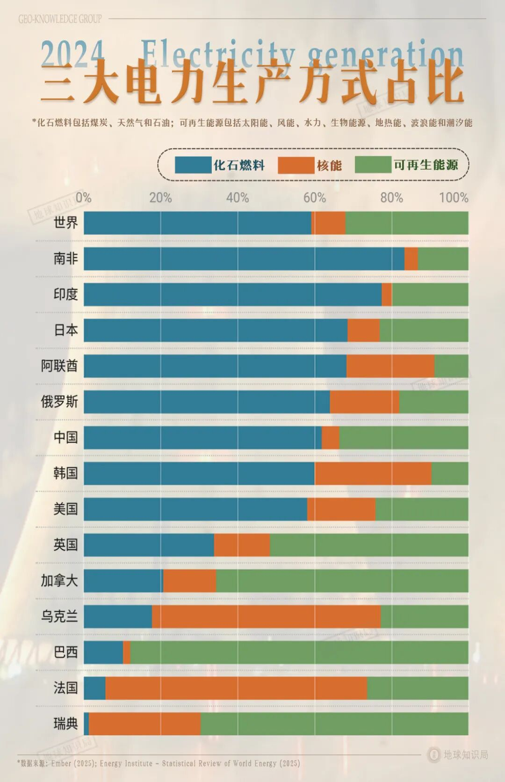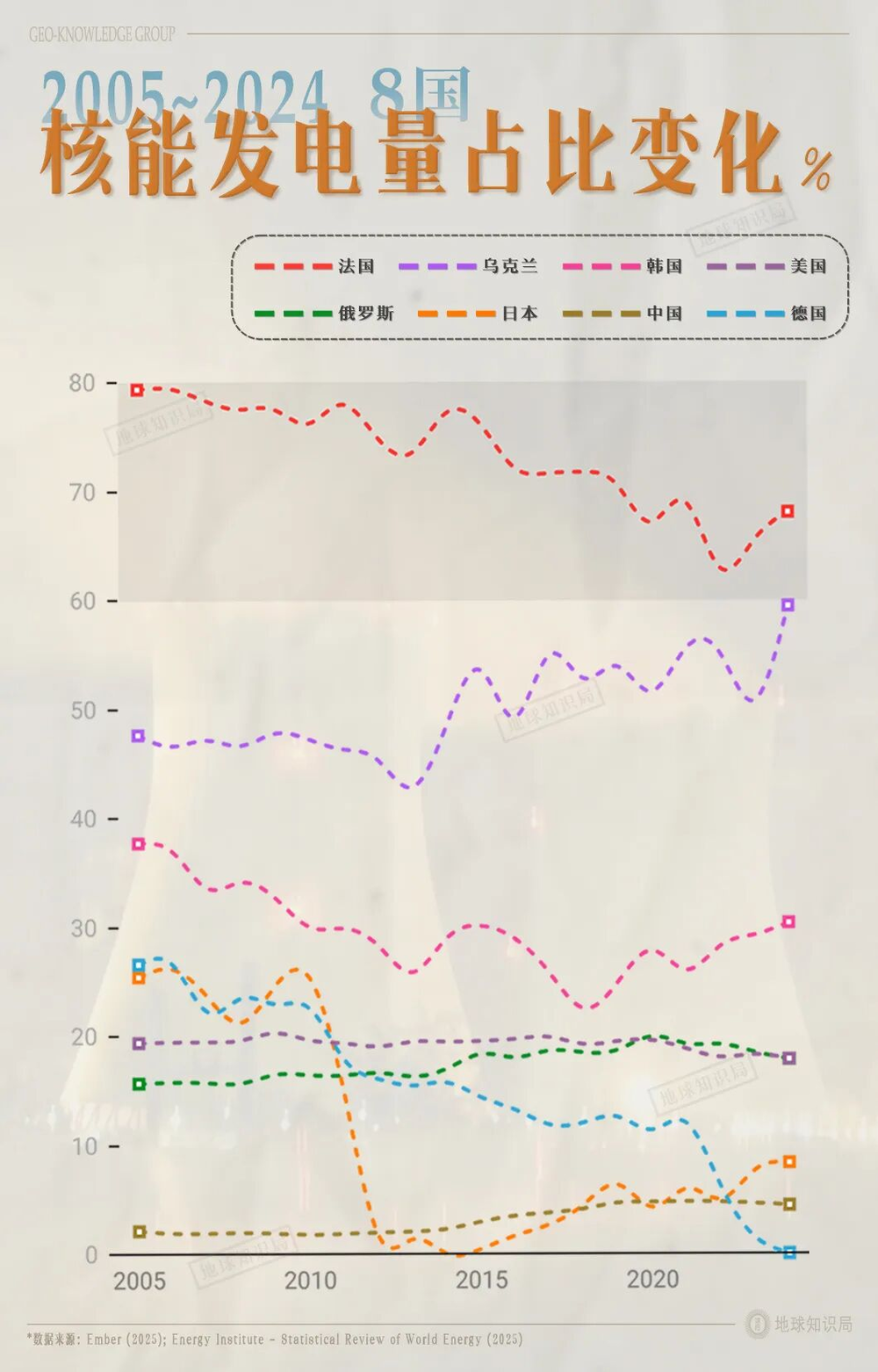 在近几十年中,法国的核电占比一直稳居世界之首▼