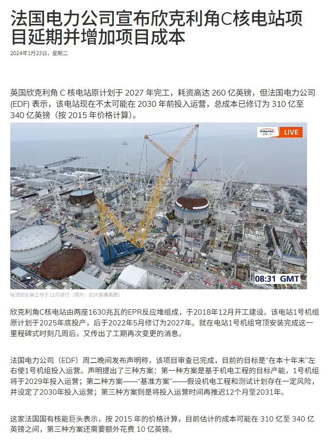欣克利角C项目成本涨了又涨,工期也多次延误