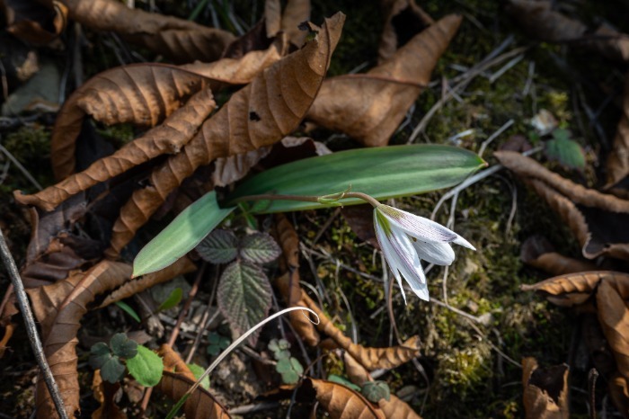 皖浙老鸦瓣所属的百合科老鸦瓣属,是典型的“早春类短命植物”。这类植物堪称大自然的“时间管理大师”。当早春时节土壤刚刚解冻、落叶乔木尚未展叶之际,它们便抓住林下短暂的强光窗口期,迅速完成发芽、抽苔、开花、结果的全部生命历程。一旦春夏之交林木葱郁、林下光线昏暗,它们的地上部分便会迅速枯萎,将能量回流至地下鳞茎休眠,以此躲避高温与低光照的胁迫。待到来年冬末春初,再次破土而出。这种独特的生命周期,是植物长期适应环境的演化智慧。