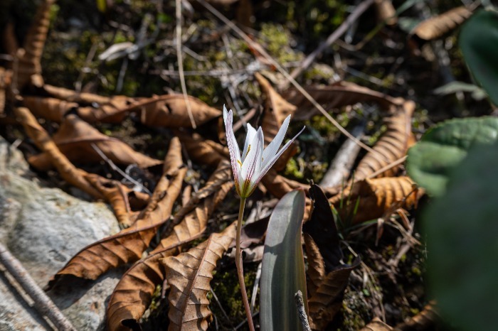 大皖新闻讯 阳春三月,草木蔓发。随着气温回暖,蛰伏一冬的植物开始苏醒。3月14日,大皖新闻记者从安徽省国家重点野生植物资源调查项目团队获悉,该团队成员芜湖职业技术大学的大一学生宇嘉诚3月11日在宁国市甲路镇海拔718米的山林间,发现了一种仅在皖浙交界处分布的特有珍稀植物——皖浙老鸦瓣(Amana wanzhensis),正迎来今年的盛花期。