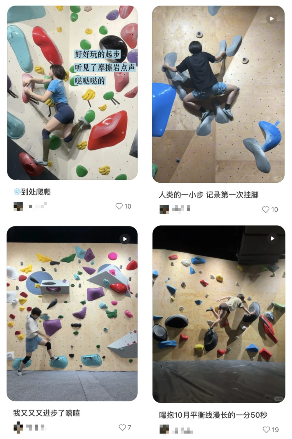最终,这些视频,会从攀岩人的本地相册传到社交媒体。“最开始拍视频,只是想看看自己的动作有没有进步,没想过发出来”,@斑点猪回忆:“但我尝试发到社交平台后发现,有岩友会留言肯定我的动作,或者给我一些建议”。