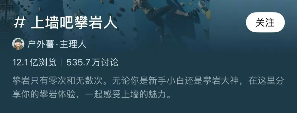 抖音上,有关#攀岩#话题的视频播放量已超过100亿,#室内攀岩#播放量也超15亿。小红书还为这项运动开启了#上墙吧攀岩人的话题互动,浏览量超过12亿。