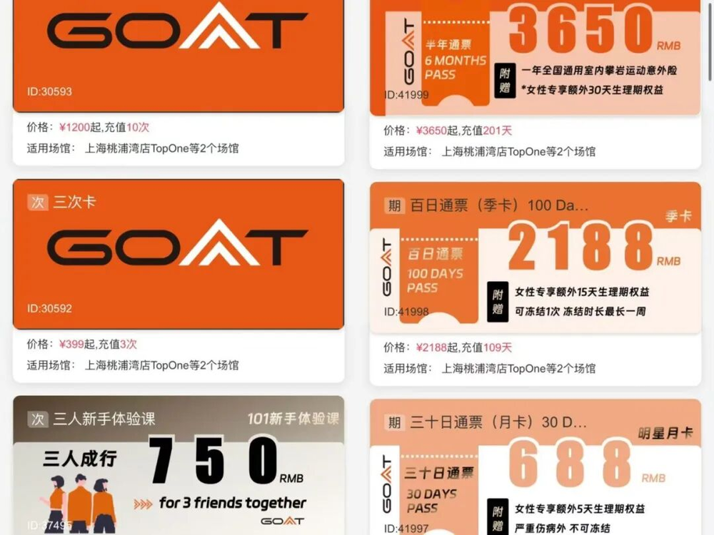 除了单次门票,大多数岩馆的收费体系与健身房相似,包括次卡、月卡、年卡以及团课、私教课程等不同产品。