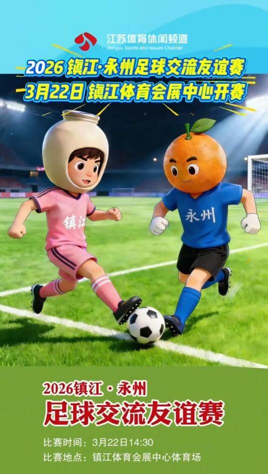 2025年湘超冠军永州队将与苏超镇江队进行足球交流友谊赛。比赛时间为2026年3月22日14:30,比赛地点位于镇江体育会展中心体育场。