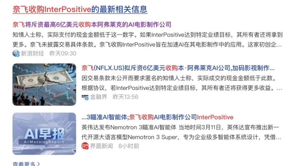 3月12日,奈飞宣布收购由演员本·阿弗莱克创立的AI电影技术公司Inter Positive,这笔最高可达6亿美元的交易,被视作史上第一家真正意义上的人工智能电影公司落地,更标志着电影行业AI应用从“概念炒作”走向“工业落地”的关键转折。