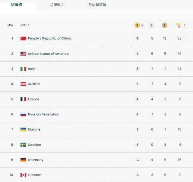 北京时间3月14日,2026年米兰-科尔蒂纳冬残奥会赛程过半。中国代表团延续强势表现,以12金9银12铜总计33枚奖牌,稳居金牌榜与奖牌榜双榜首,创造了中国代表团境外参加冬残奥会的历史最佳战绩。