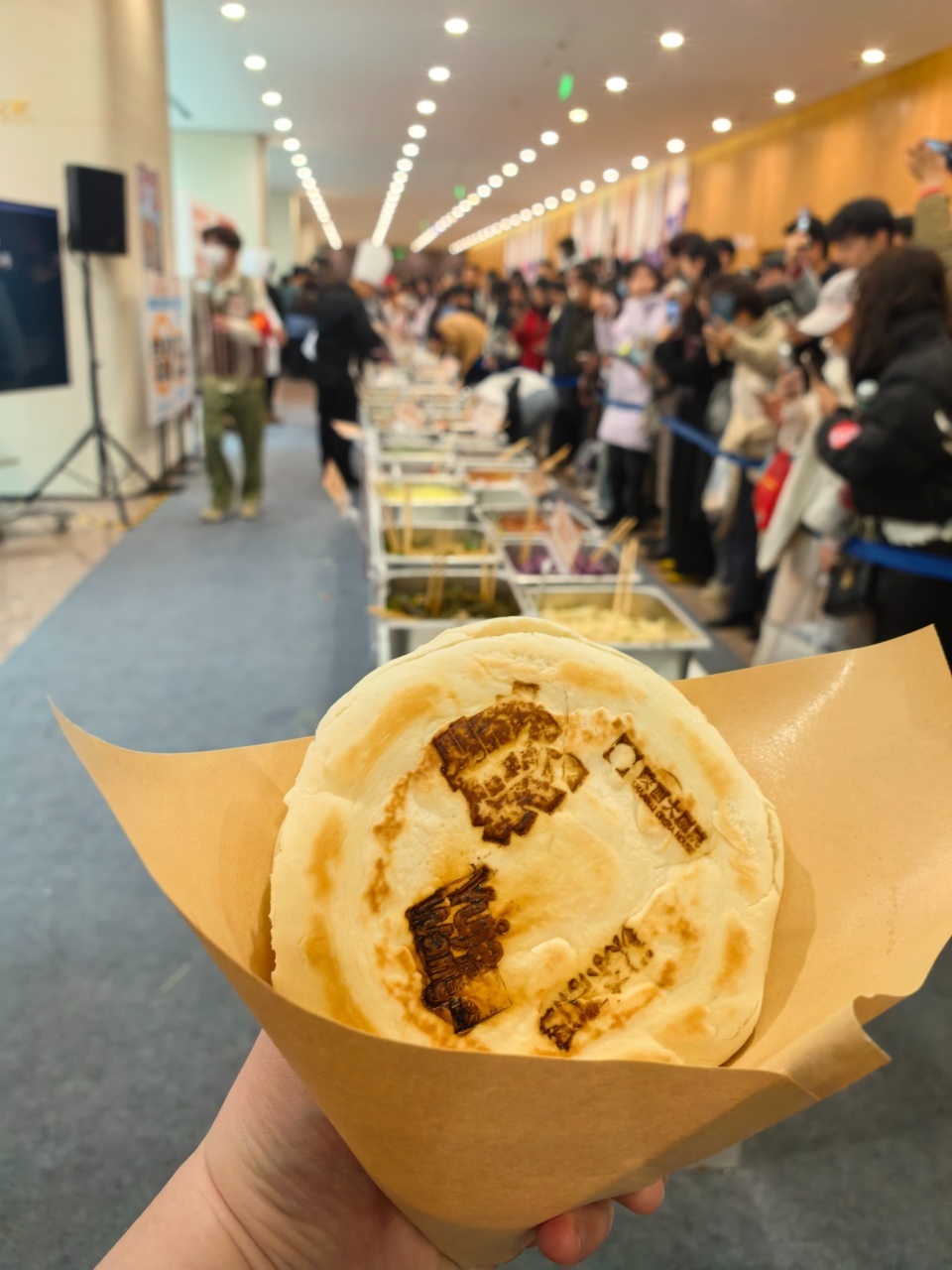 3月14日,西安首届菜夹饼大赛在陕西省大剧院西安音乐厅开赛。上午11时,比赛现场人头攒动,西安音乐厅交响大厅前厅弥漫着白吉饼和凉拌菜的香味。在艺术殿堂举办市井美食活动的反差感,也让不少参赛选手调侃为“神圣又接地气的行为艺术”。