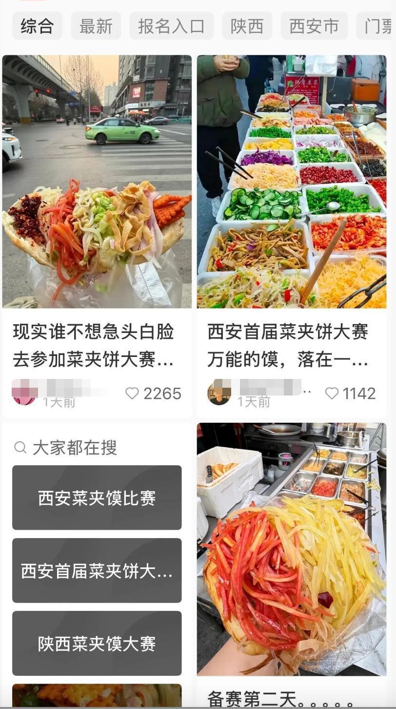 此前有网友在社交平台分享的“把叔的三轮车夹进去”系列视频,引发了全网对西安菜夹馍的关注,也让一位摆摊大爷因为“不心疼”而走红。此次西安首届菜夹饼大赛在开赛前,不少网友在社交平台晒出自己的菜夹馍照片,笑称是在进行“馍拟考”备战,“179度是菜夹饼,180度是素拼”,这也让西安菜夹馍再度走红。