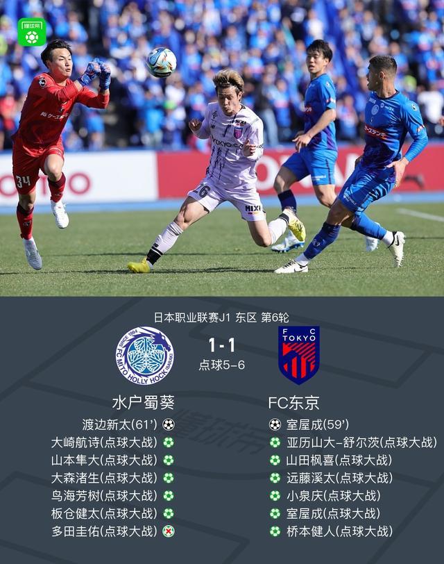 北京时间3月14日日本职业联赛J1 东区 第6轮,水户蜀葵主场对阵FC东京。水户蜀葵渡边新太破门。FC东京室屋成破门。最终比分水户蜀葵 6-7 FC东京。