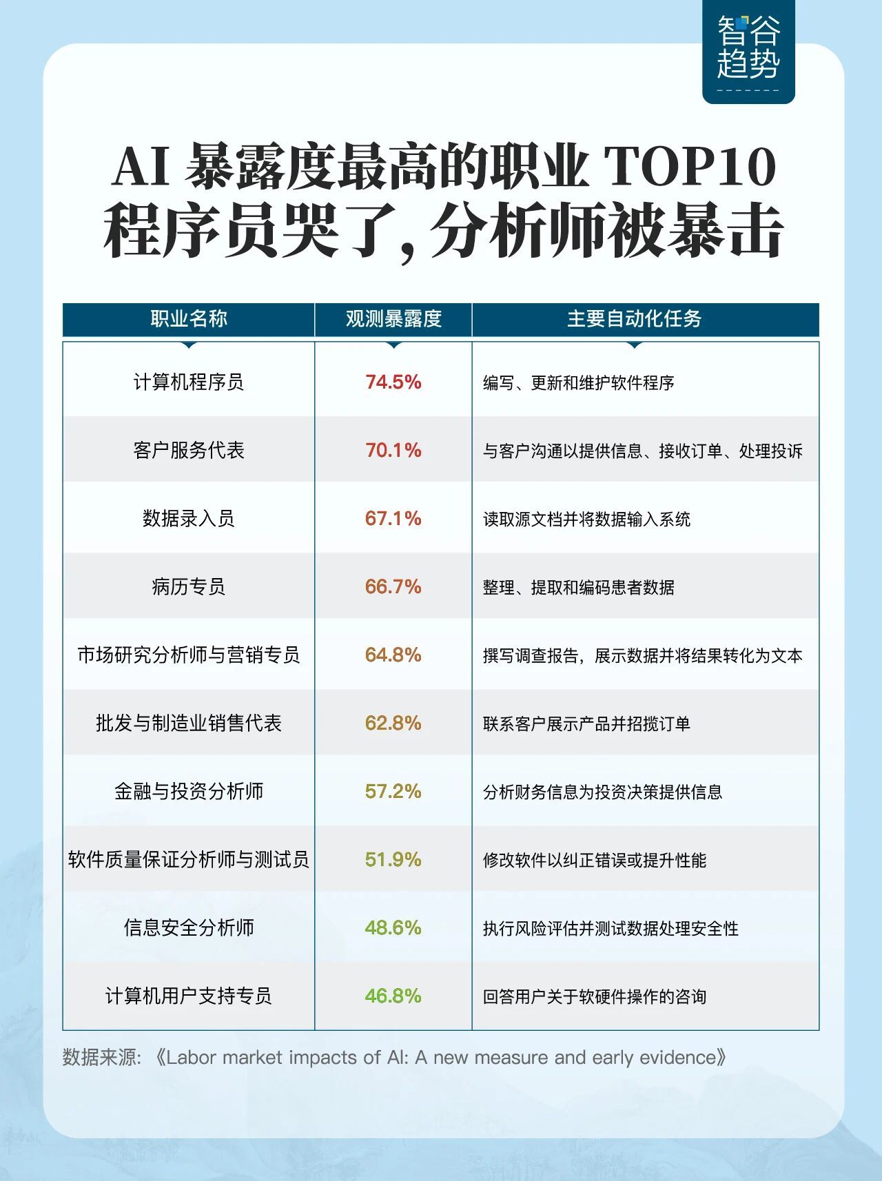 被AI暴击Top10职业出炉,程序员哭了。全球几千万高薪程序员,迎来职业生涯最大考验。