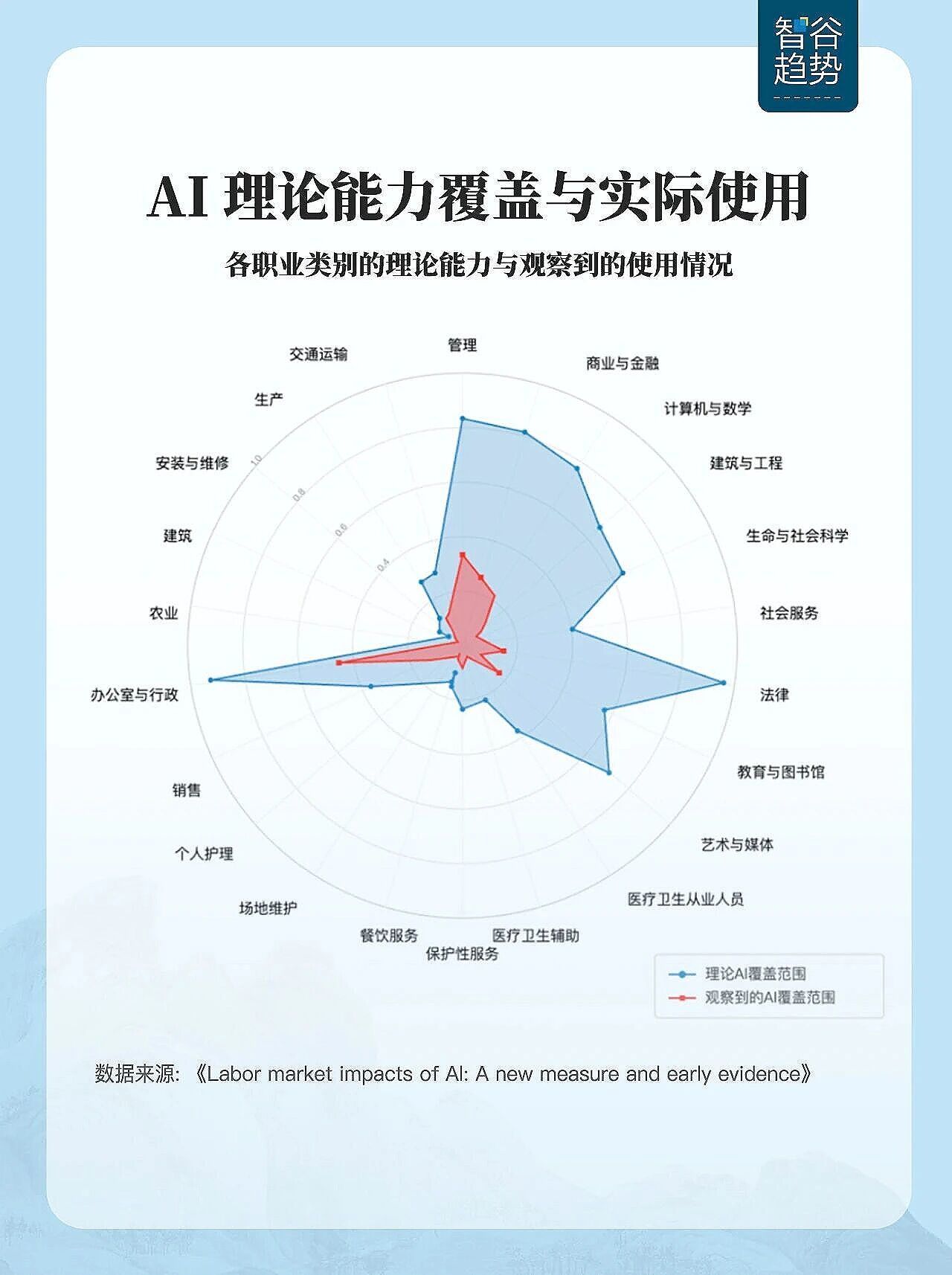最近,开发出Claude的巨头Anthropic发布了一篇报告,用“AI暴露度”来衡量职业中有多少任务可以被AI自动化完成。