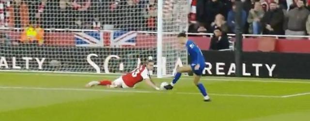 当时埃弗顿从左路发动进攻,将球送入禁区后,前锋德怀特-麦克尼尔迎球打出一脚力量十足的射门。面对这脚射门,阿森纳门将大卫-拉亚甚至还没来得及完全移动到位,皮球看起来很可能会直接飞入球门。