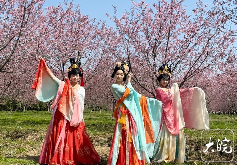 樱花树下,非遗传承人正表演全椒民歌《春到马厂》,悠扬曲调引得游客驻足;另一侧,年轻人围聚在咖啡小屋前,捧着樱花特饮拍照打卡。传统与现代在此交融,构成了樱花季独特的文化体验。