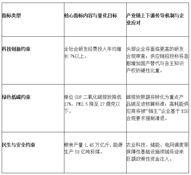然而,在宏观总量指标放宽的同时,《纲要》在科技自立自强与绿色低碳转型两大维度上,却设下了极其严苛、毫无妥协余地的约束性“硬指标”。这些指标不仅直接决定了国家部委的考核方向,更将通过市场化手段与行政化监管,层层穿透至产业链的最末端。
