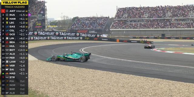 北京时间3月15日,F1中国大奖赛正赛,安东内利杆位夺冠,拉塞尔第二,汉密尔顿第三,勒克莱尔第四,包括维斯塔潘和迈凯伦双人在内的七人退赛。