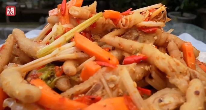 记者发现,不仅这一家食品企业存在用双氧水泡鸡爪的行为。在重庆曾巧食品有限公司,记者同样发现了大量回收的蓝色包装桶,桶身标签赫然标注着过氧化氢,即俗称的双氧水,含量高达35%,生产厂家是眉山市的金山制药有限公司。记者以普通工人身份应聘入职重庆曾巧食品有限公司,在无健康证、无体检、无消毒的情况下,顺利进入了这家企业的生产一线。在调查中,企业内部人员亲口证实,这里的鸡爪,正是用双氧水进行漂白。(央视财经)