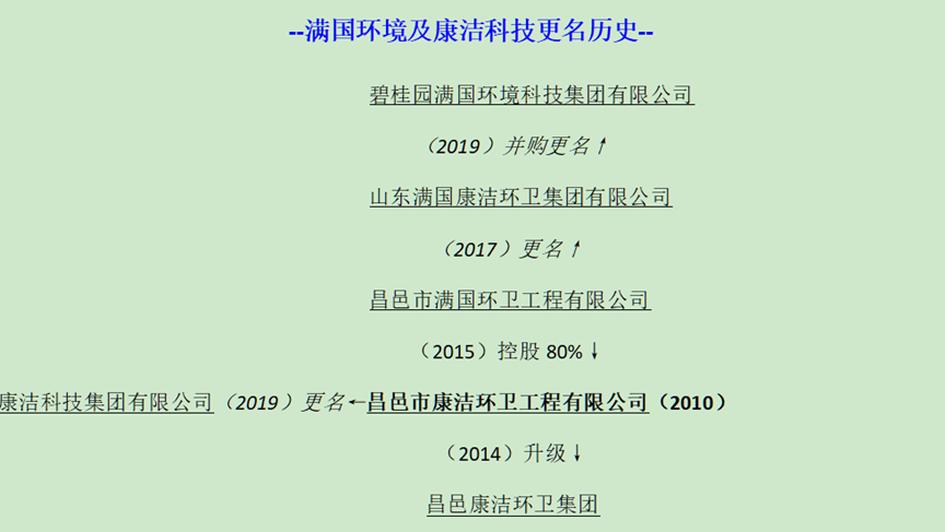 3个月后,满国康洁全称变更为“碧桂园满国环境科技集团有限公司”,碧桂园的入主伴随的是康洁科技在对外形象上的隐退,业务范围也从环卫领域扩大到环境领域。