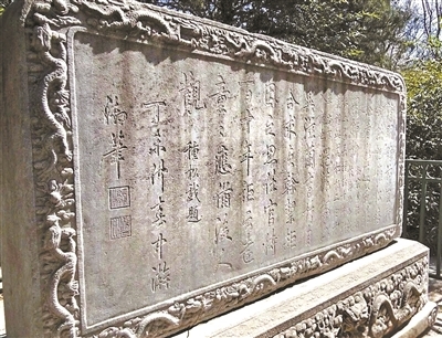 在北京大学未名湖西岸钟亭所在的土山下,有一通清代“植树碑”,正面刻有乾隆御笔题写的种松诗。