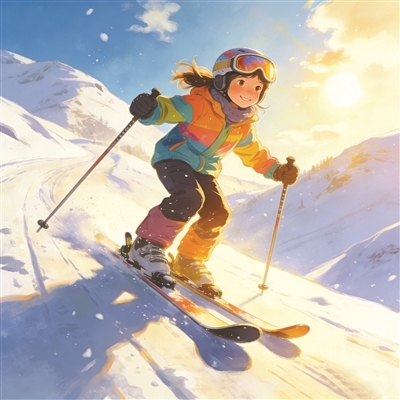 不知摔了多少次,当我再次站上雪道顶端,夕阳的余晖洒在雪地上,镀上了一层金色。我深吸一口气,稳住身形,循着教练教的技巧缓缓滑下。脑海里清晰地闪过每一个动作要领,身体慢慢找到平衡,雪板在雪面上划出流畅的弧线,风从耳边轻轻吹过。这一次,我没有跌倒,稳稳当当地滑到了雪道底端!爸爸妈妈在一旁欢呼鼓掌,我心里满是自豪与喜悦。