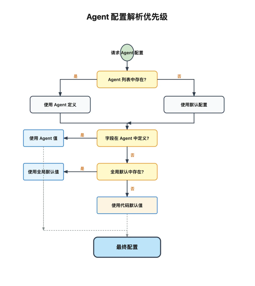 而没有单独定义的部分,再回落到全局默认值。这种设计让多Agent系统既灵活,又不至于配置爆炸。