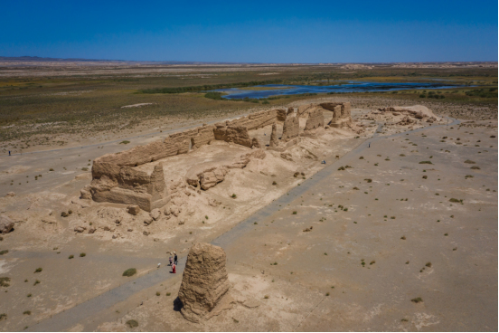 俗称玉门关的小方盘城,建于汉武帝开通西域的年代。现存的方形关城用黄胶土夯筑,城垣还很完好,西、北两门敞开着,像在迎接过往旅人。高高的城墙带着垛口,城下马道蜿蜒,不难想见当年“一夫当关,万夫莫开” 的气势,这里曾是中原通往西域的咽喉,无数人从这里往来,带去丝绸茶叶,也带回西域的物产与文化。遗址里的汉长城是汉代军事防御的重要部分,历经千年风沙,夯土墙体依旧挺拔,墙面上的夯痕还清晰可辨。而大方盘城俗称河仓城,是当年的军需粮仓,夯土筑成的长方形城池,内部被隔成三座仓库,选址特别考究,被草地沼泽和戈壁环绕,隐蔽又安全,尽显古人的智慧。