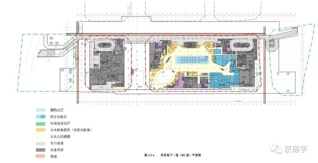 首层将设置3个出入口。地下一层主要接驳口位于北侧,服务出租车、网约车到达旅客。同时,地下一层还设置了岛式开放旅客值机岛、值机区等。