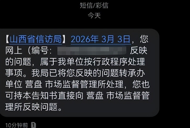3月3日,信访记录显示,张女士反映的问题已经转承办单位营盘市场监督管理所处理,可向该所反映问题。