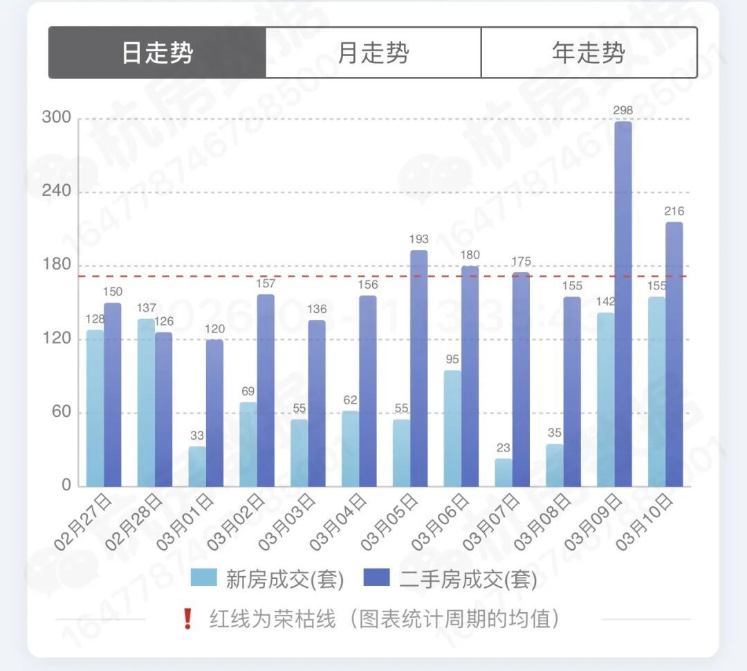 杭房数据显示,3月9日杭州二手房单日网签量,从之前不足200套跳涨至298套。3月10-11日,亦均有200套+。截至目前,本月二手房已累计成交2000多套。若保持近期水平,有望冲击六七千套。