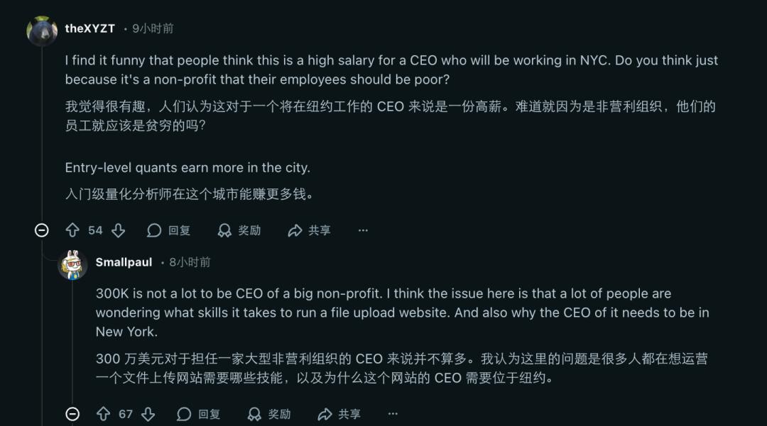 还有一部分人质疑,管理一个「仅仅是上传和下载 PDF 文件的网站」,真的需要花 30 万美元请个高管吗?不过,也有行业内人士反驳说,考虑到 CEO 需要在纽约这种地方主导一家科技类非营利组织的融资、法律和合规事务,这个薪资在当地其实算不上高。