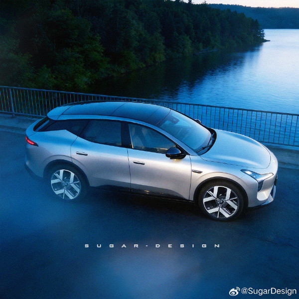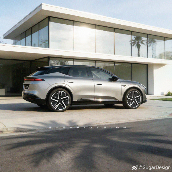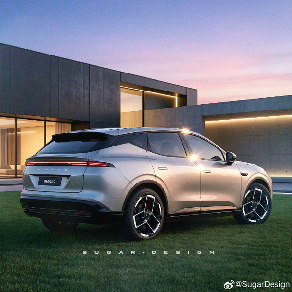 车身侧面是MONA D02最显著的特征。渲染图显示,新车采用了大幅度的溜背设计,车顶线条从B柱开始流畅下压,营造出强烈的轿跑运动感。博主特别指出,D02与轿车D03在车身下半部分及D柱的三角窗造型上几乎一致,主要区别就在于车顶的溜背线条。从前45度角观察,其动感姿态甚至让人联想到豪华电动跑车路特斯Electre,高级感十足。