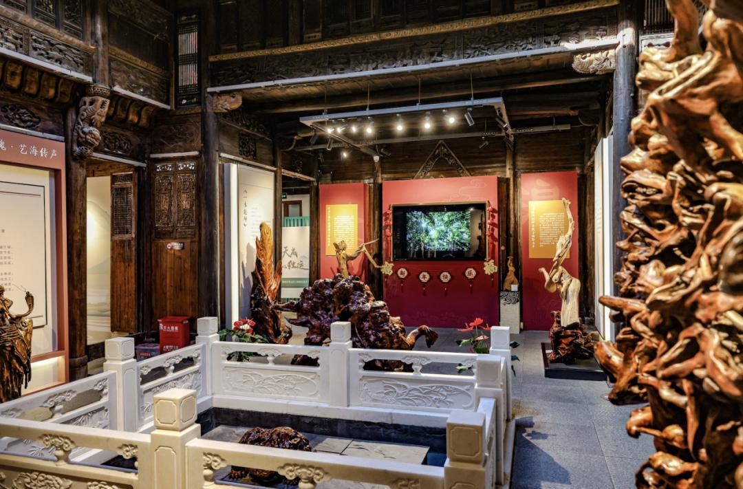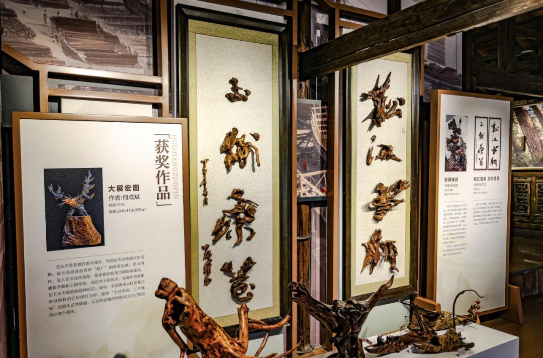 馆内500余件精品,诠释着 “七分天成,三分人工” 的艺术信条。那些看似虬曲的根杈,不是被雕刻成艺术,而是被艺术发现。在这里,浪木不仅是根艺,更是关东先民“化天工为巧用”的生存智慧。当你在展馆的体验区看到匠人用电锯修整木料,最终化作仙鹤或渡船时,你会顿悟:所谓不朽,并非与时间为敌,而是与时间共生。