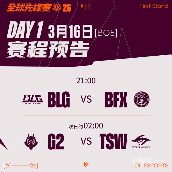 【CNMO科技消息】3月16日,英雄联盟官方公布了2026全球先锋赛D1 3月16日赛程预告及首发名单,具体信息如下: