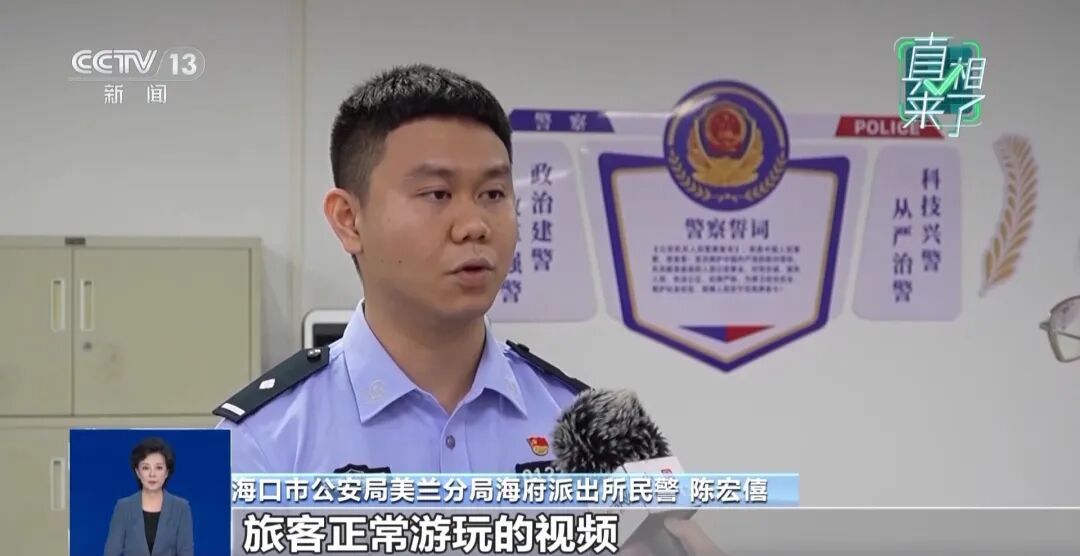 海口市公安局美兰分局海府派出所民警:他先是在骑楼拍摄了一段旅客正常游玩的视频,回到家中后,用其他博主发的导游恶意谩骂游客的音频和这个视频拼接起来,然后加上定位发到网上。