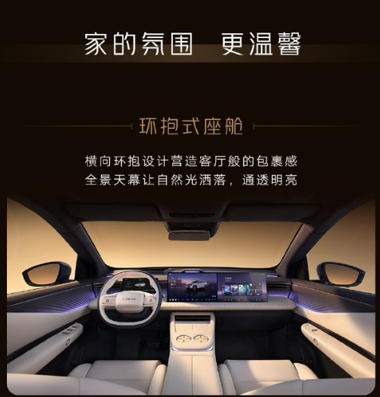 从发布的官图来看,东风日产NX8的内饰采用环抱式座舱设计,横向线条的铺陈营造出类似客厅的包裹感与通透性。配合全景天幕,让自然光洒落车内,空间感通透明亮。氛围营造上,新车将256色光瀑式智能氛围灯巧妙地隐藏在水波纹门饰板内,灯光映衬下如同波光粼粼的水面,璀璨而雅致。