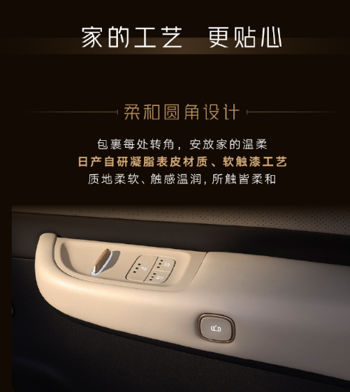在材质与工艺上,东风日产NX8同样追求家的细腻与温度。座椅灵感源自意大利CHILLAX沙发斜面角度设计,提供米白与雅黑等色彩搭配。车内大面积运用了日产自研的凝脂表皮材质和软触漆工艺,触感温润柔和。设计细节更是别出心裁,例如名为“流光树影”的工艺,通过在饰板上凿刻不规则的孔隙阵列,让光线与视线能够穿透,形成如同光影呼吸般的自然效果,赋予车内空间以生动的雅致格调。