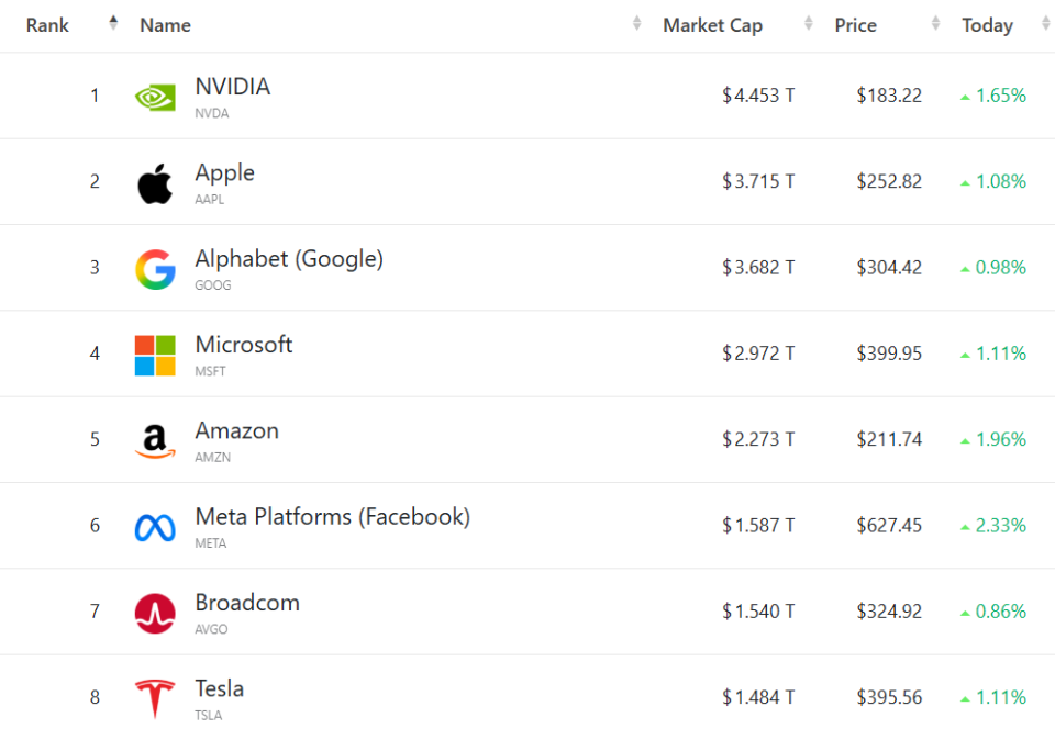 大型科技股集体走强,(按市值排列)苹果涨1.08%,谷歌C涨0.98%,微软涨1.11%,亚马逊涨1.96%,Meta涨2.33%,博通涨0.86%,特斯拉涨1.11%。