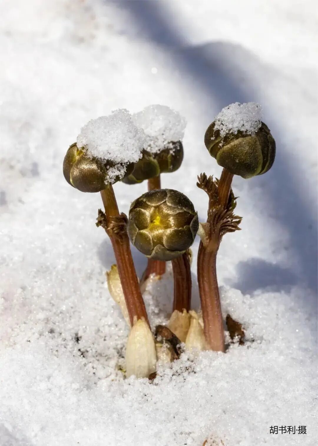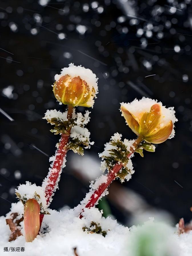 春雪依旧,白雪与冰凌花交织。