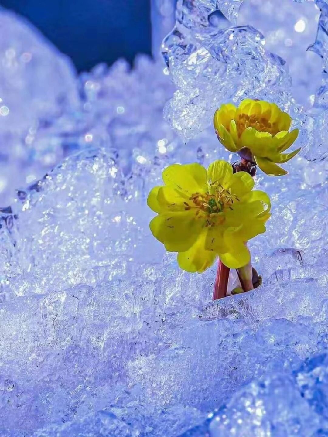 每年三月,当冰雪尚未完全消融,北国春日的使者——冰凌花,凭借顽强的生命力破冰而出,悄然绽放。那一抹抹金黄,被誉为“林海雪莲”,是冬末春初森林里的第一抹亮色。在向阳的山坡上,你能看到那晶莹的花朵顶着薄冰,形成“冰中花、花上雪”的奇观,这是北方初春独特的生长符号。
