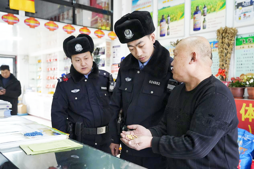 在五常市某农资大市场,前来采购的张大哥站在各色品牌化肥前不知如何选择。正在开展联合巡查的五常市公安局民警与市场监管局工作人员走上前,仔细核对化肥包装上的生产许可证号、执行标准、进货台账等信息。民警一边查看一边向张大哥进行宣讲:“正规农资产品包装标识清晰,来源可追溯,您购买时一定要保留好票据。”