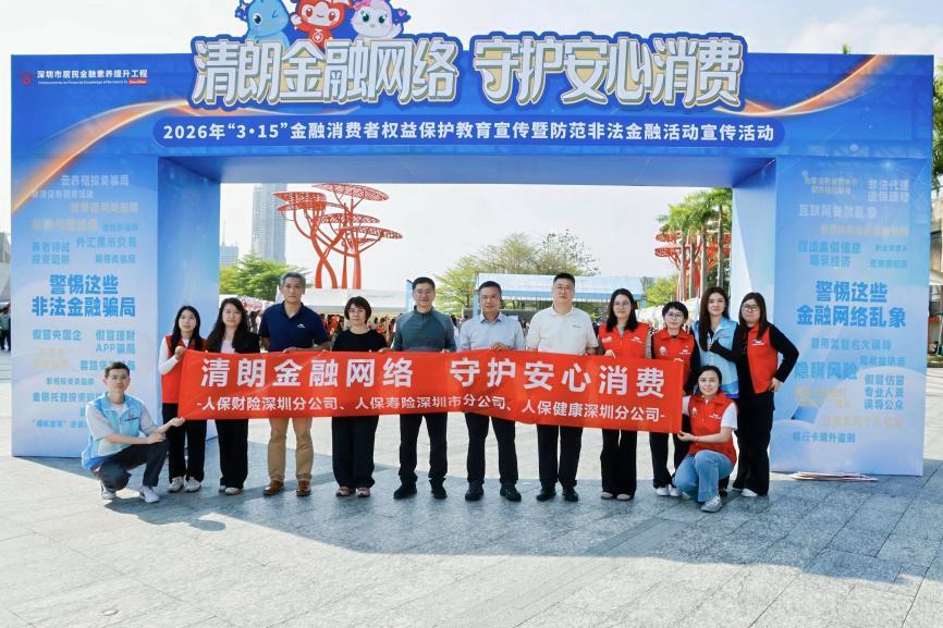 为深入践行金融工作的政治性与人民性,切实提升市民金融素养,筑牢金融风险防范防线,3月15日下午,人保财险深圳分公司、人保寿险深圳市分公司、人保健康深圳分公司(以下简称“中国人保驻深机构”)积极参与由金融监管部门指导、深圳市居民金融素养提升工程办公室组织的2026年“3·15”金融消费者权益保护教育宣传暨防范非法金融活动宣传活动。
